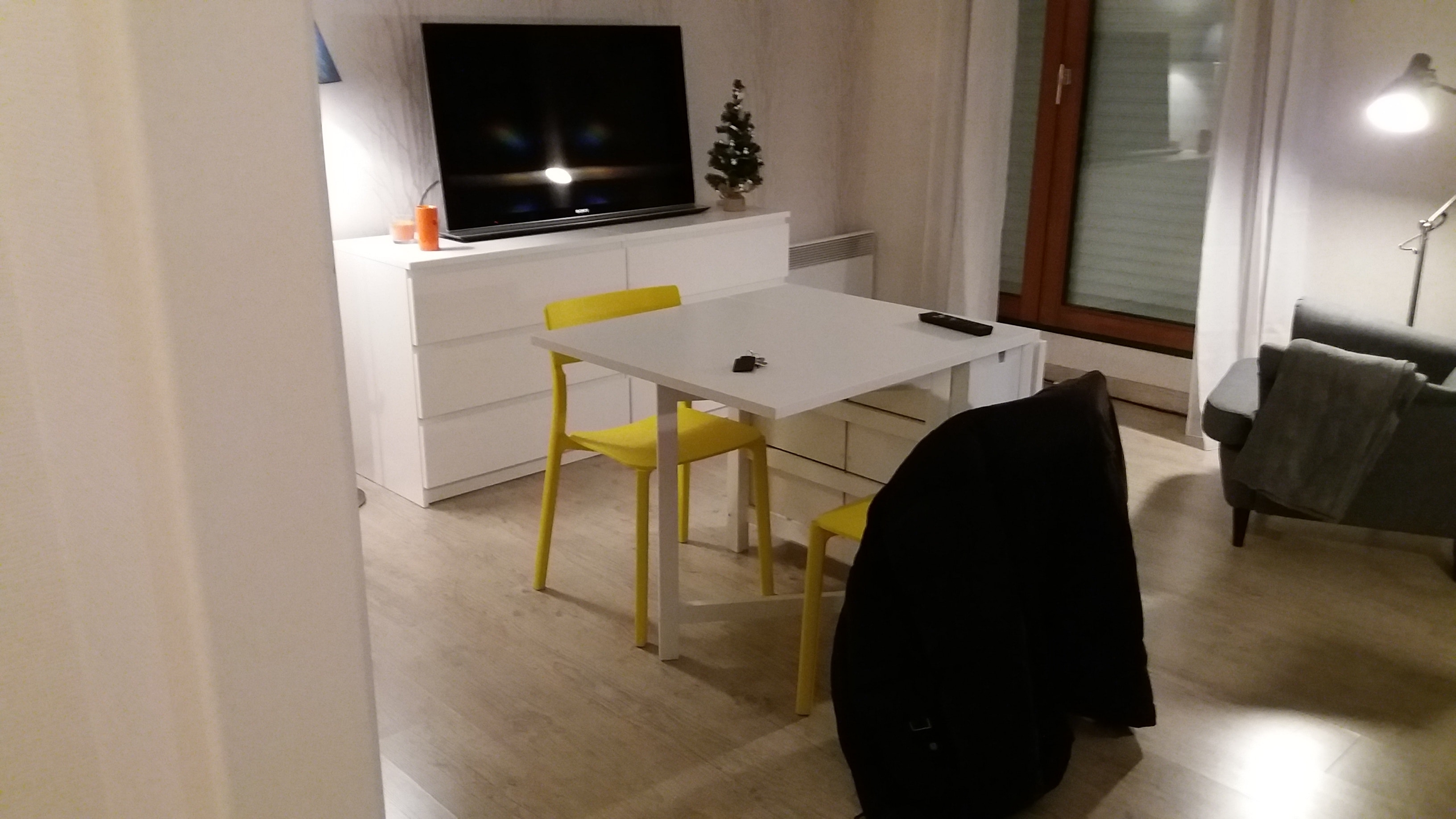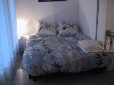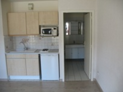 RDC. Entrée avec meuble rgt chaussures, placard/ penderie. Kitchenette équipée placards, réfrigérateur avec compart/ Congélateur, plaques vitrocéramiques, micro-ondes. Gde salle d'eau, douche avec porte, lave linge. Séjour . Coin couchage avec literie 140. Chauffage électrique (compteur jour/nuit). Studio en parfait état, très ensoleillé, calme, situé dans résidence standing. Badge, interphone. fibre optique Local à vélo fermé. Parking facile au pied de la résidence.