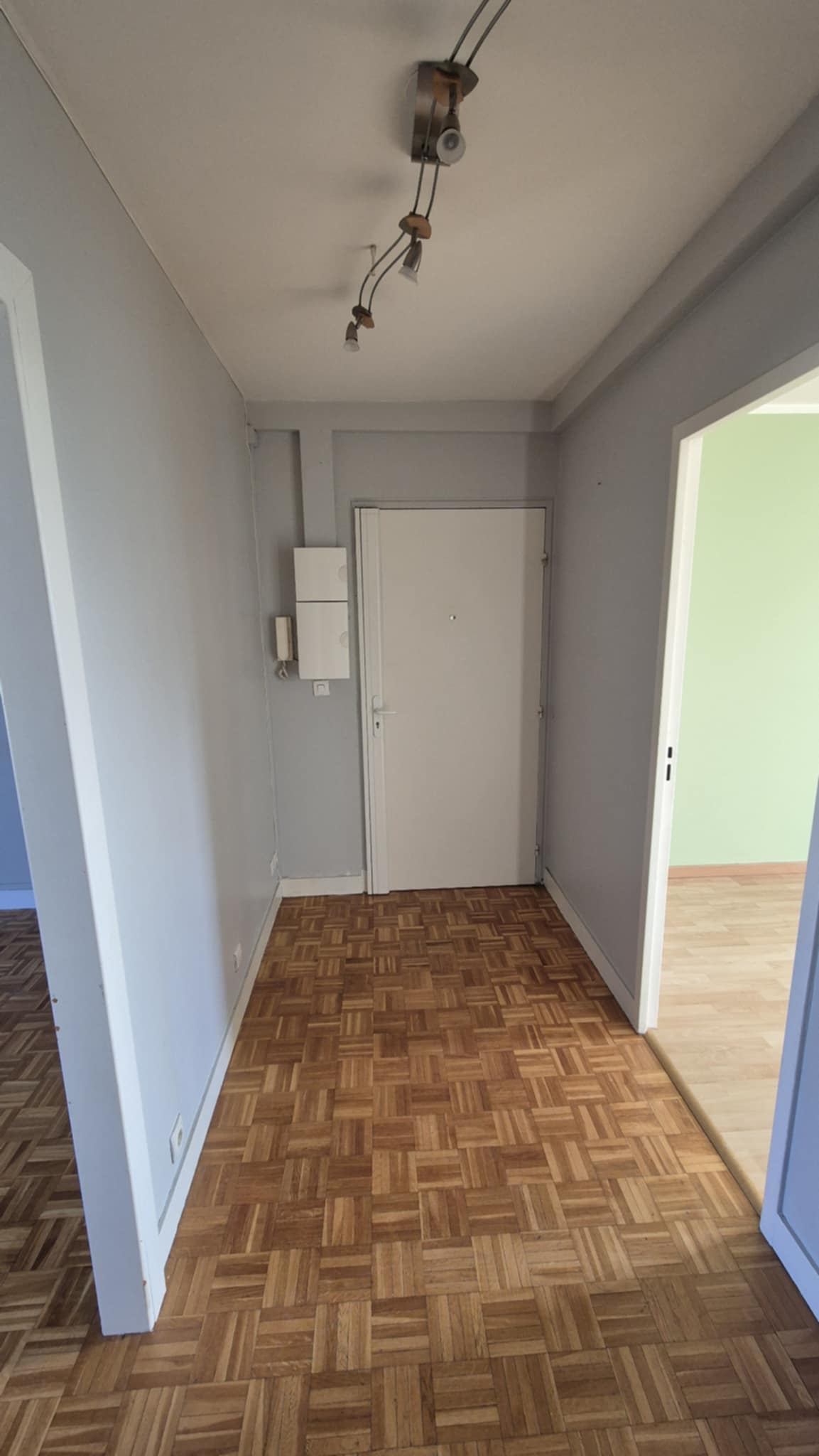 🚪Entrée avec étagère, couloir et de grands placards aménagés.