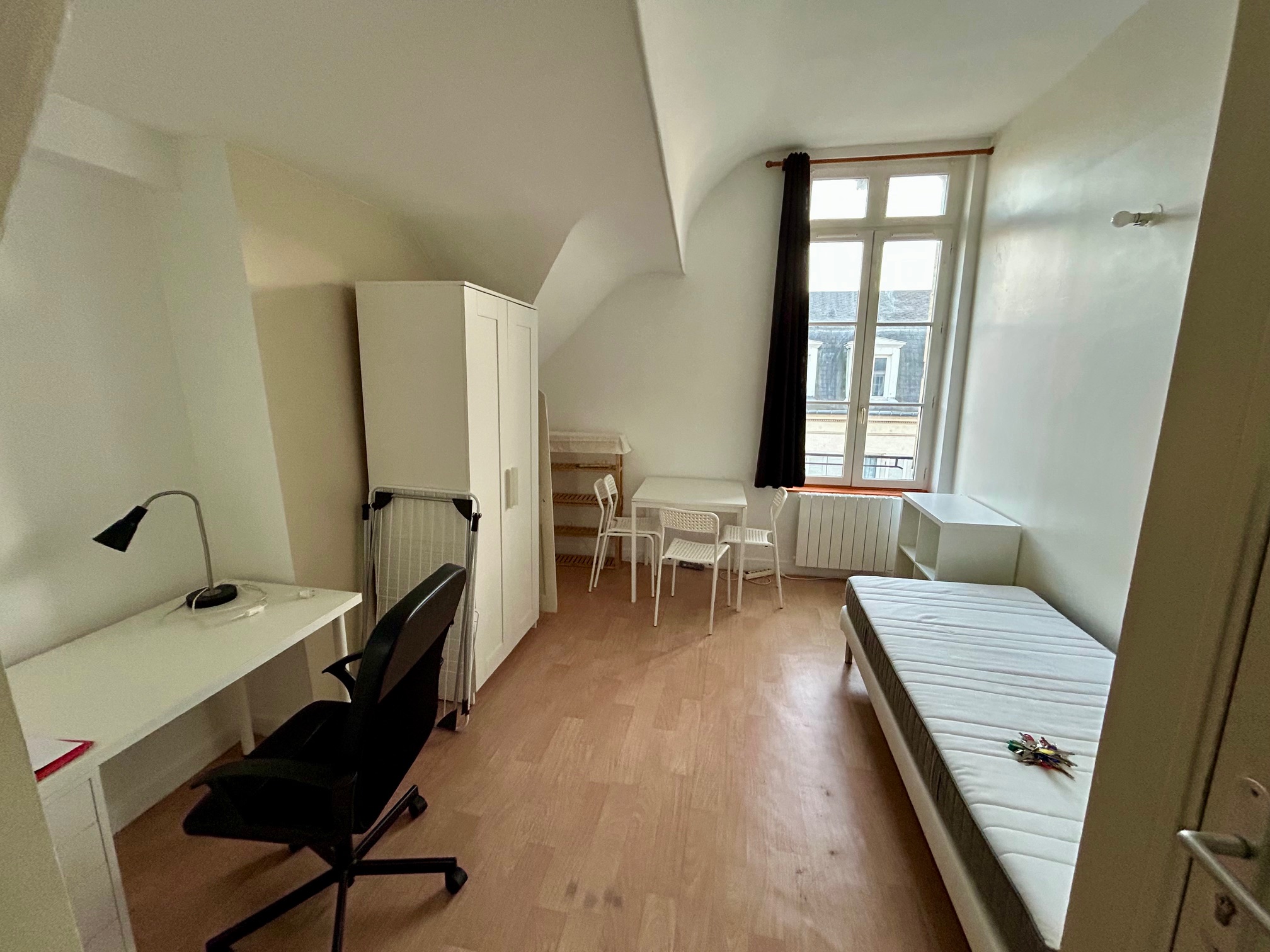Studio meublé indépendant en parfait état, au RDC d'une résidence étudiante située rue Edouard Dubloc à Compiègne. Quartier très calme et résidentiel à moins de 5 min à pied de l'UTC. Chambre avec bureau, lit, placard, kitchenette équipée, douche et WC. Place de parking dans la cour. Branchement pour le lave-linge. Compteur EDF individuel. Eau comprise dans les charges. Animaux non admis. 500€ CC