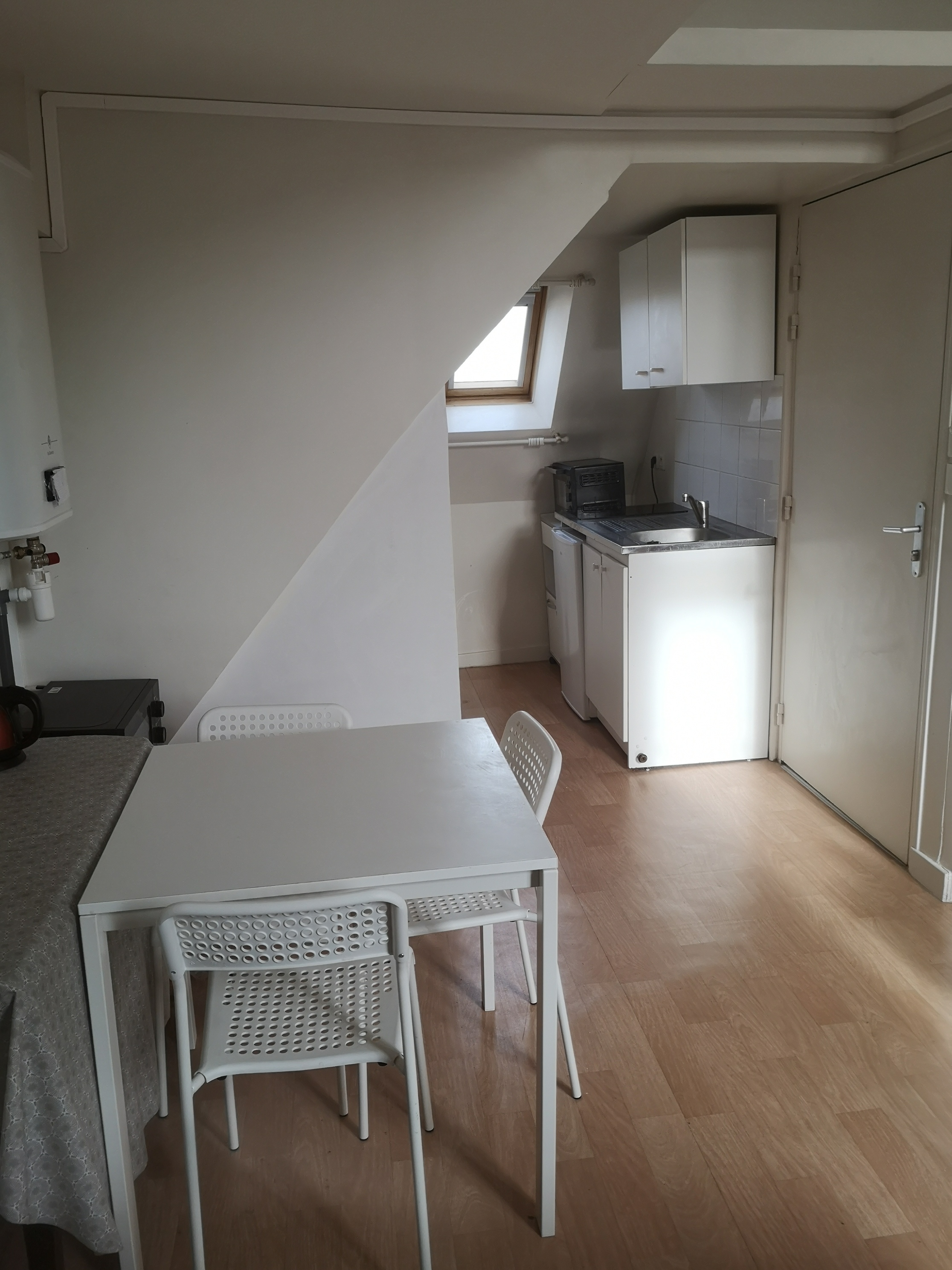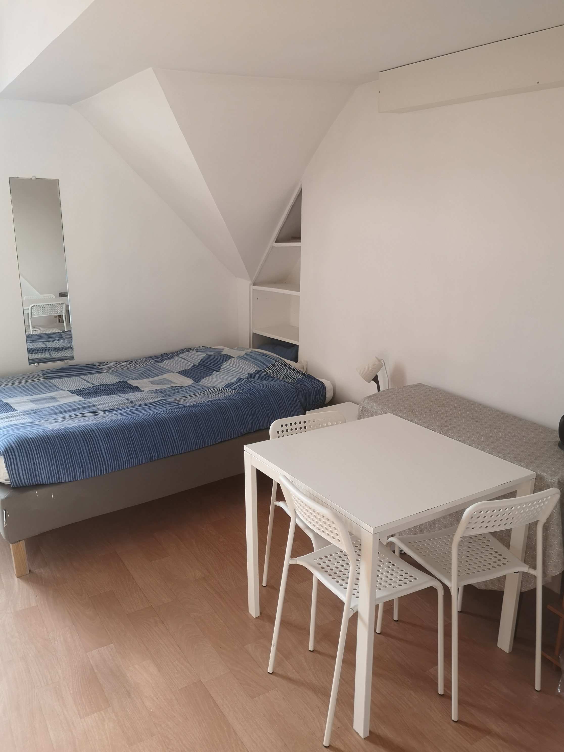 Studio meublé indépendant en parfait état, au 2ème étage d'une résidence étudiante située rue Edouard Dubloc à Compiègne. Quartier très calme et résidentiel à moins de 5 min à pied de l'UTC. Chambre avec bureau, lit, placard, kitchenette équipée, douche et WC. Place de parking dans la cour. Branchement pour le lave-linge. Compteur EDF individuel. Eau comprise dans les charges. Animaux non admis.