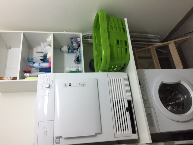 *Une vraie buanderie séparée avec lave linge et sèche linge, table à repasser , espace séchage.
