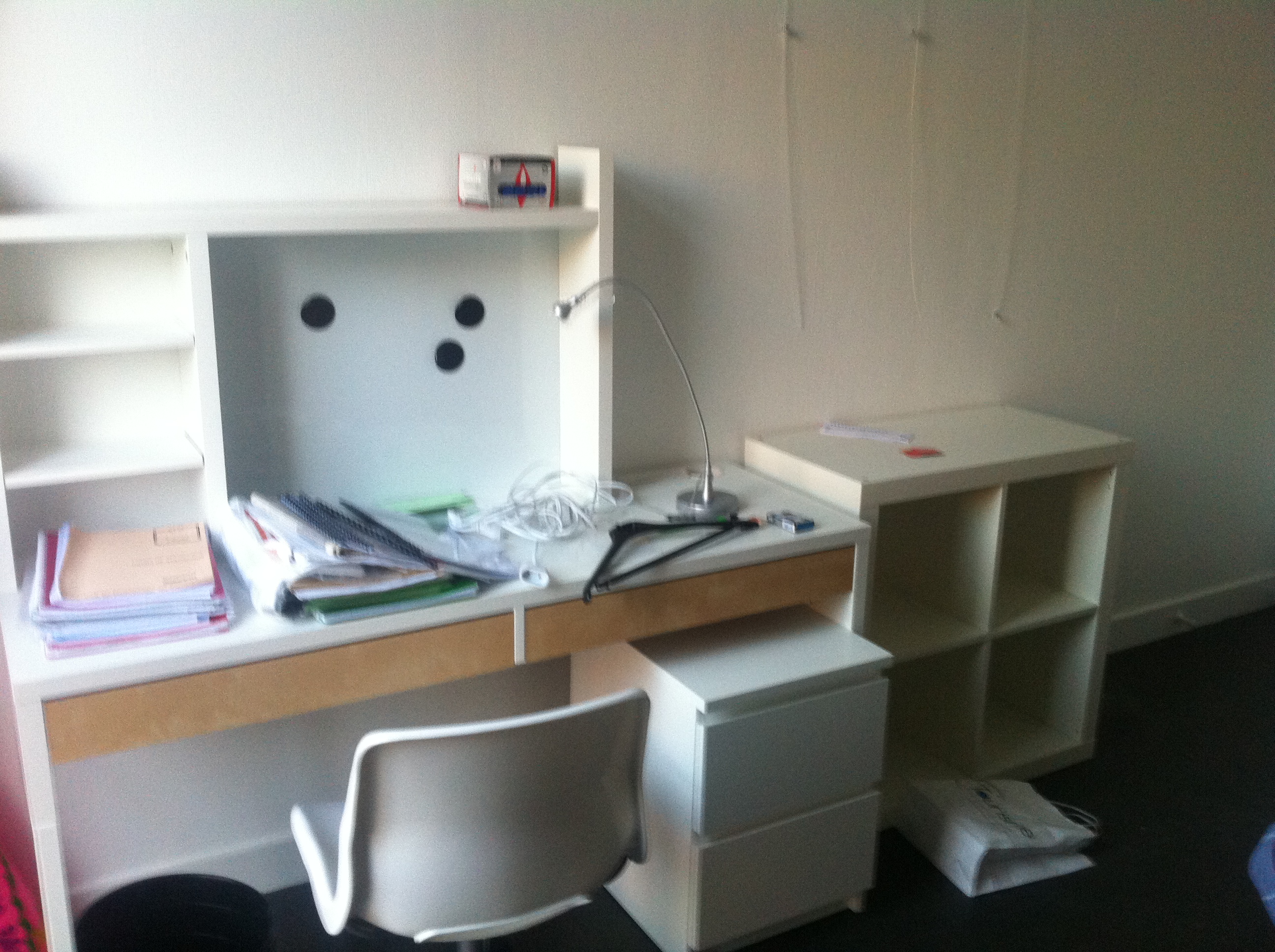 *chambres avec lit double, bureau, étagères, grand placard/penderie, commode, chaise de bureau
