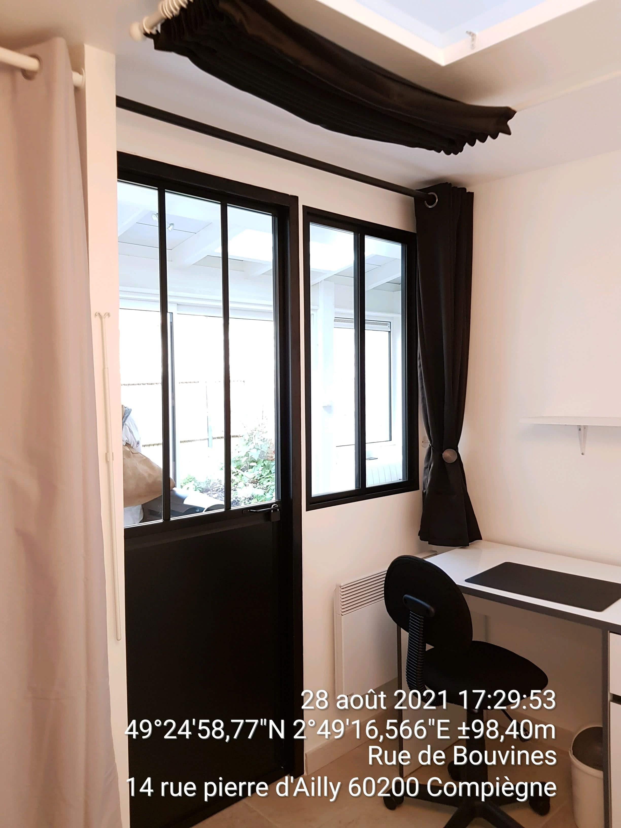 <em>Coeur centre ville à 3 mins à pieds de l'UTC, Charmante maisonnette rénovée, au calme en fond de jardin, composée de 2 chambres (une 15 m2 et l'autre 10 m2)+ grande pièce de vie et cuisine toute équipée (frigo, plaques vitro, hôte, four, micro onde, lave linge, aspirateur...). Rez-de-chaussée sur jardin avec grande baie vitrée. Belle suite parentale à l’étage et une chambre parentale plus petite au rez de chaussée au loyer de 359 € Hors Charges ; Chacune est équipée de bureaux, dressings et sanitaires individuels neufs avec douches vasques et WC indépendants.
