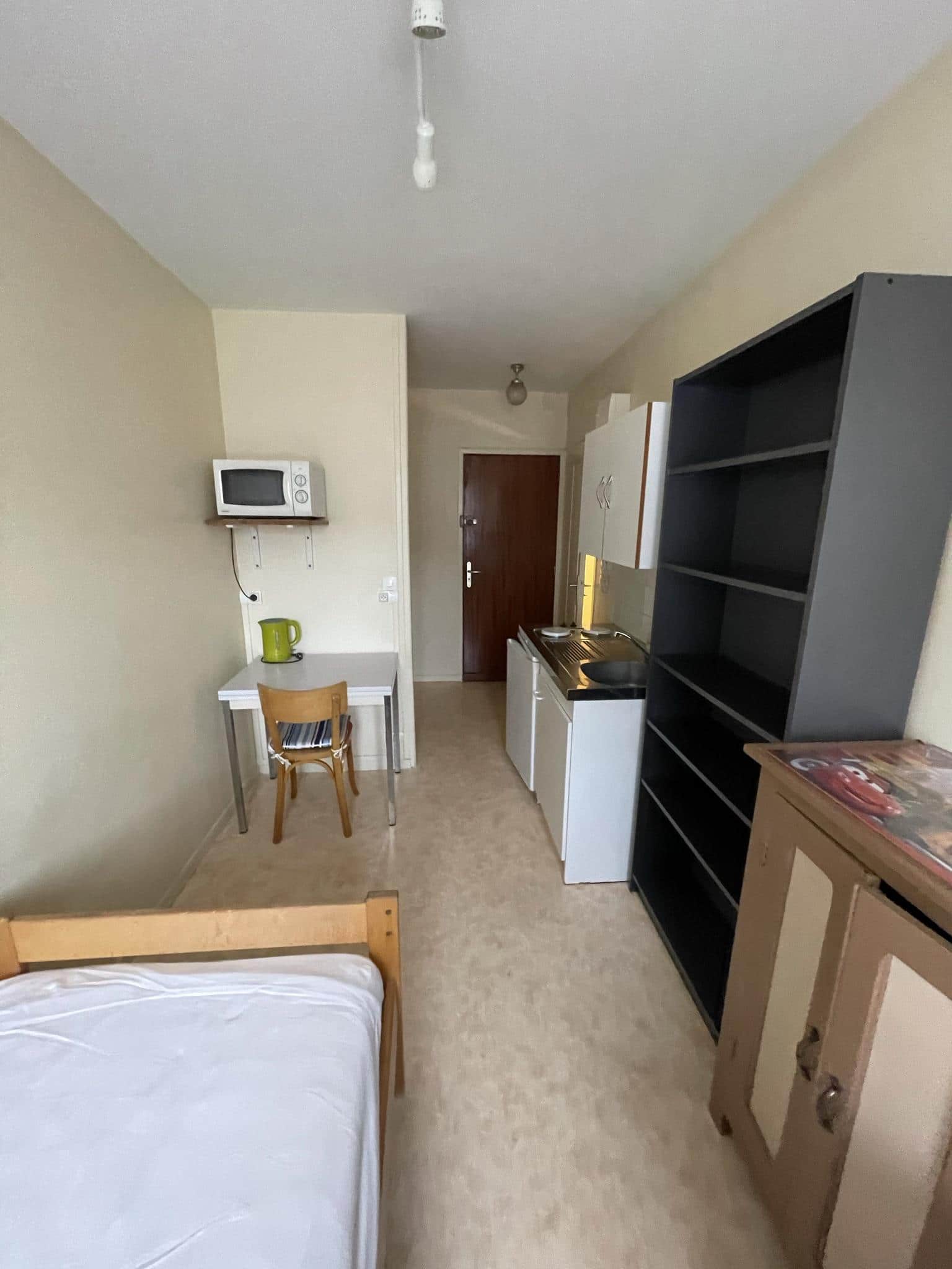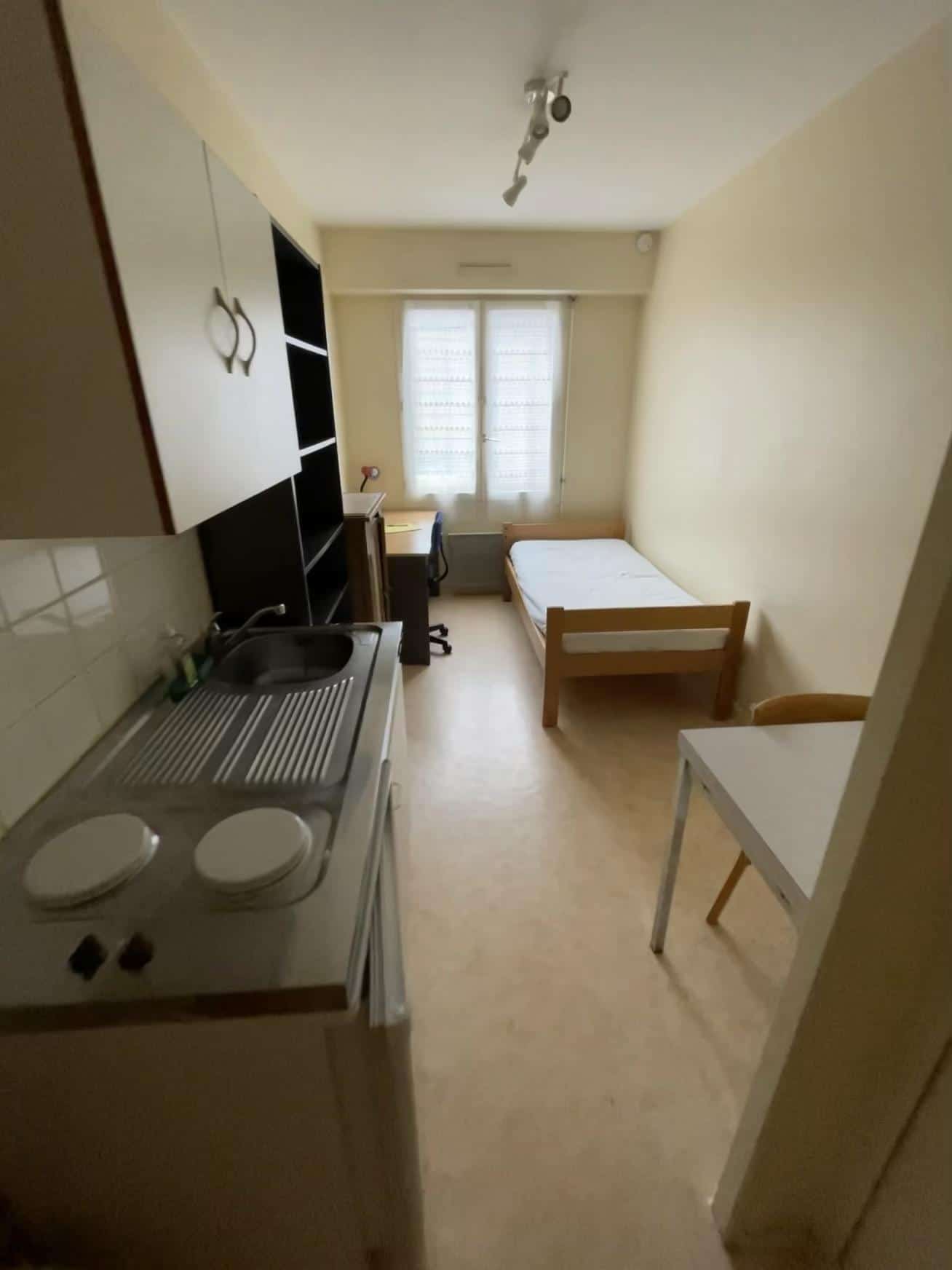 Proche de l'UTC. Résidence avec digicode, interphone. 1er étage avec ascenseur. Sol entièrement PVC. Salle de bain avec douche et WC. 1 entrée avec placard. Coin repas, lit 90 cm, bureau, chaise, 1 étagère + 1 meuble bas. coin cuisine équipé de plaques chauffantes, placard, réfrigérateur et micro-ondes. Aspirateur. Chauffage électrique individuel. Les charges sont une provision pour l'eau froide et l'entretien des parties communes. EDF en supplément Disponible à partir de Février 2026