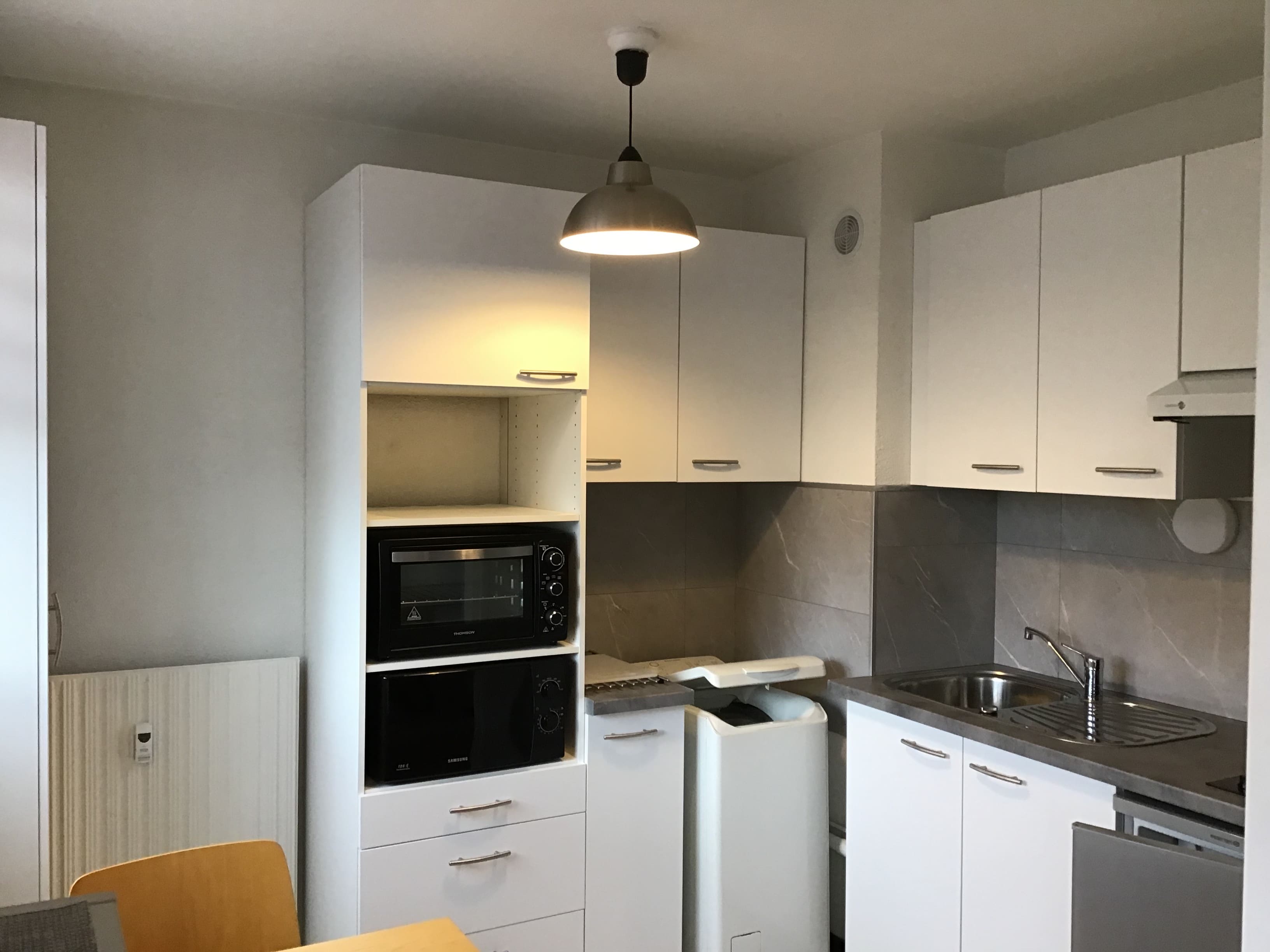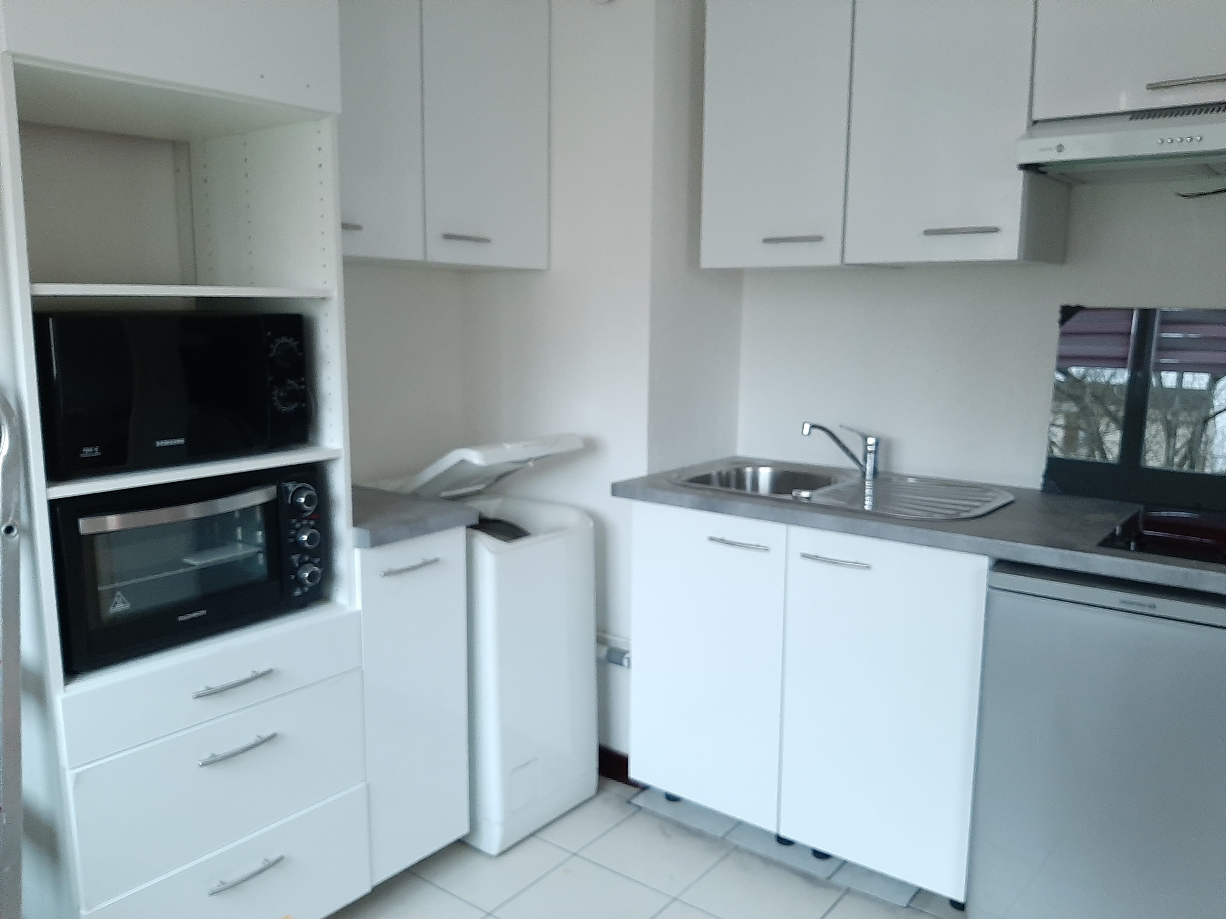 Appartement de 29 m2 dans résidence sécurisée (interphone, badge) très calme.et propre. Arrêt de bus en bas de la résidence, situé à mi-chemin 900 m entre UTC (centre de recherche et centre benjamin Franklin) et à 1 heure de Paris. Nombreux commerces et école à proximité, Appartement entièrement équipé à neuf situé au 2 ème étage sans ascenseur, sans vis-à-vis dans un square boisé, belle vue et très lumineux. Ce bien avec parquet est composé d’une entrée donnant sur une salle de bain aménagée, (baignoire avec paroi douche, meuble vasque, armoire de toilette), une grande pièce principale ouverte sur la Cuisine équipée : meubles haut -bas, évier, frigo, plaques induction, étagères, hotte, plan de travail, machine à laver. Baie vitrée avec volets roulants. Electricité entièrement mise aux normes. Prises internet RG45. Loyer de 490 Euro(s) et 80 euro(s) de provisions sur charges Les provisions sur charges comprennent : L’eau, le chauffage et l’entretien des parties communes. Les charges sont mensuelles et donnent lieu à une régulation annuelle. Demande d’un garant avec revenus environ 2000€. Idéal jeune étudiant(e). SDB / rénovée Cuisine : équipée
