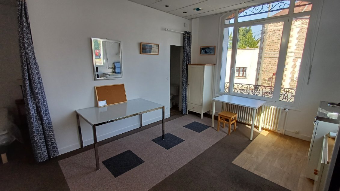 Appartement meublé 22 m2 type F1 - Une Grande pièce à vivre claire avec 2 grandes fenêtres, avec une cuisine équipée (réfrigérateur, plaques de cuisson, micro-ondes et rangements, un coin bureau (Il y a bien sûr une chaise qui n'est pas sur la photo :) ). Dans un espace séparé, une salle d'eau [douche, lavabo & wc], et un espace chambre très bon état. Disponibilité dans les parties communes, d’une machine à laver le linge, à partager avec les autres étudiants sur place. Appartements totalement indépendants les uns des autres. Parking à vélo fermé à l'extérieur. Possibilité de garer une voiture sur le parking du bâtiment. 5mn à pieds de l’UTC et du restaurant universitaire ; 1mn d'Auchan. Loyer mensuel : 390 euros +150 euros de charges (tout inclus y compris internet). A régler par virement en début de mois.