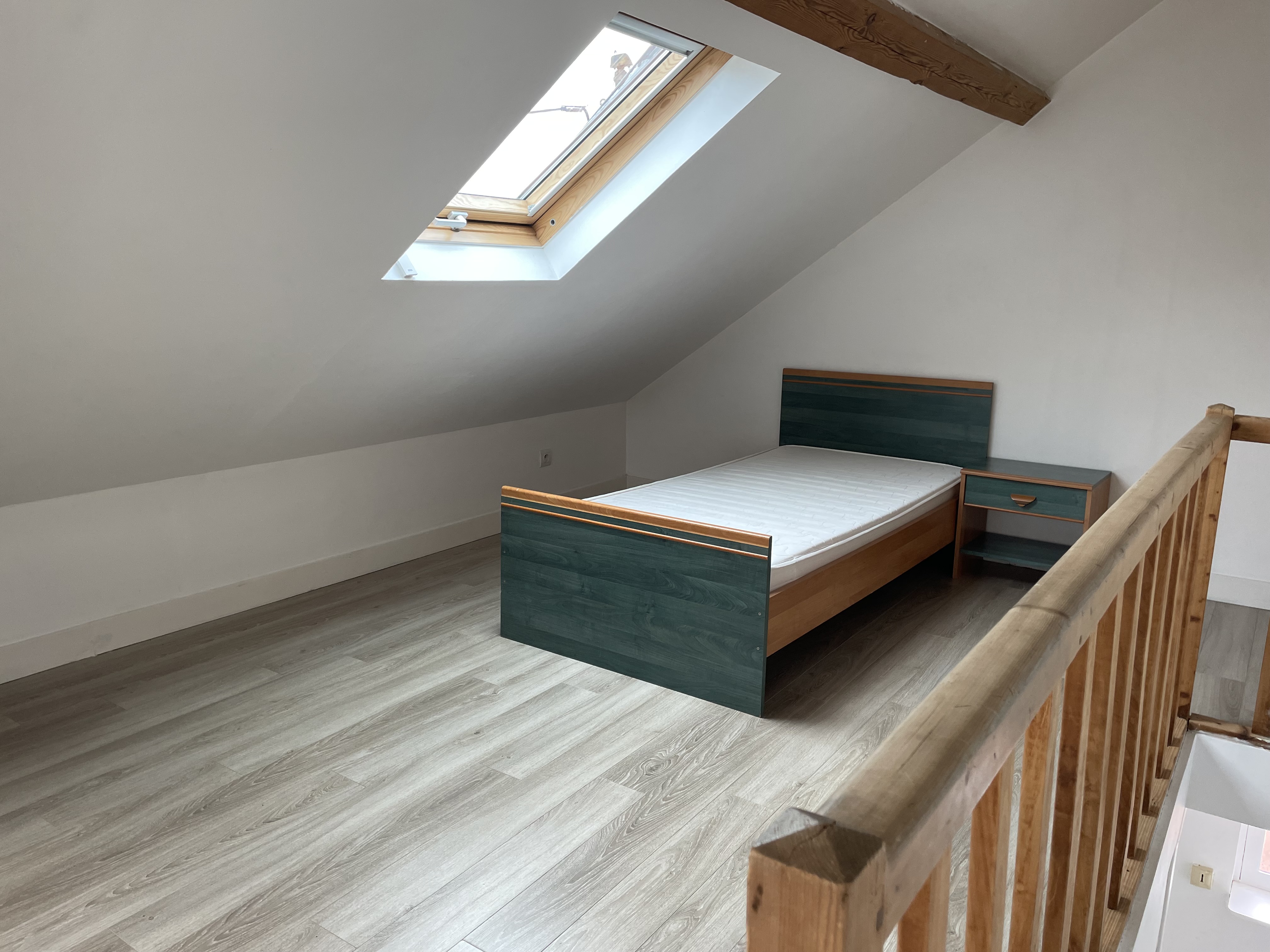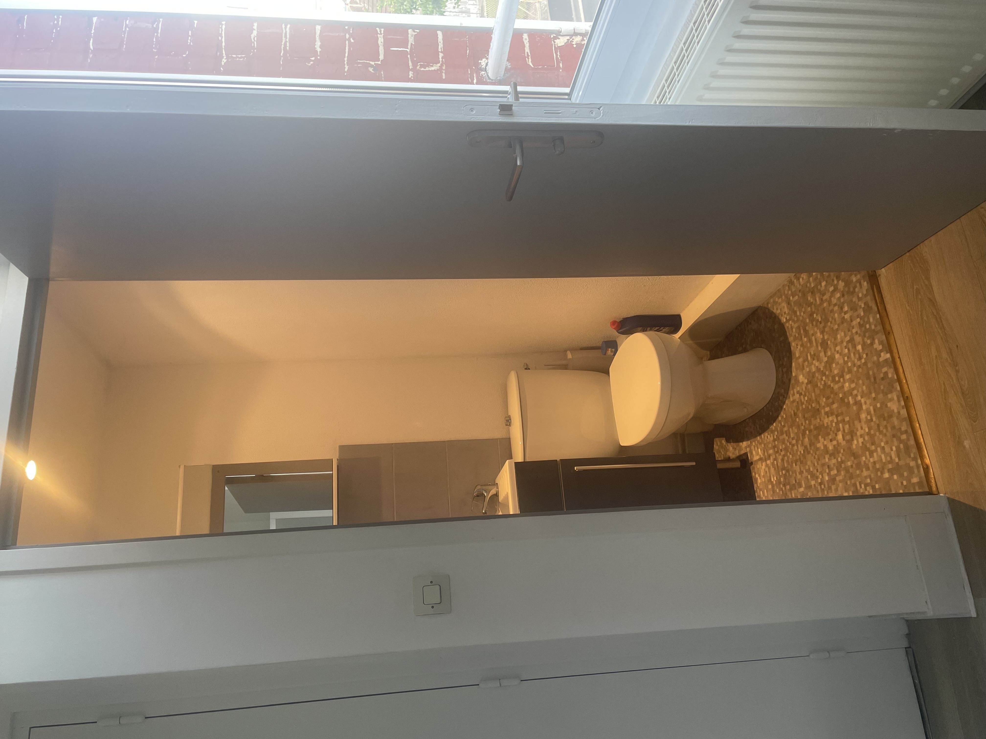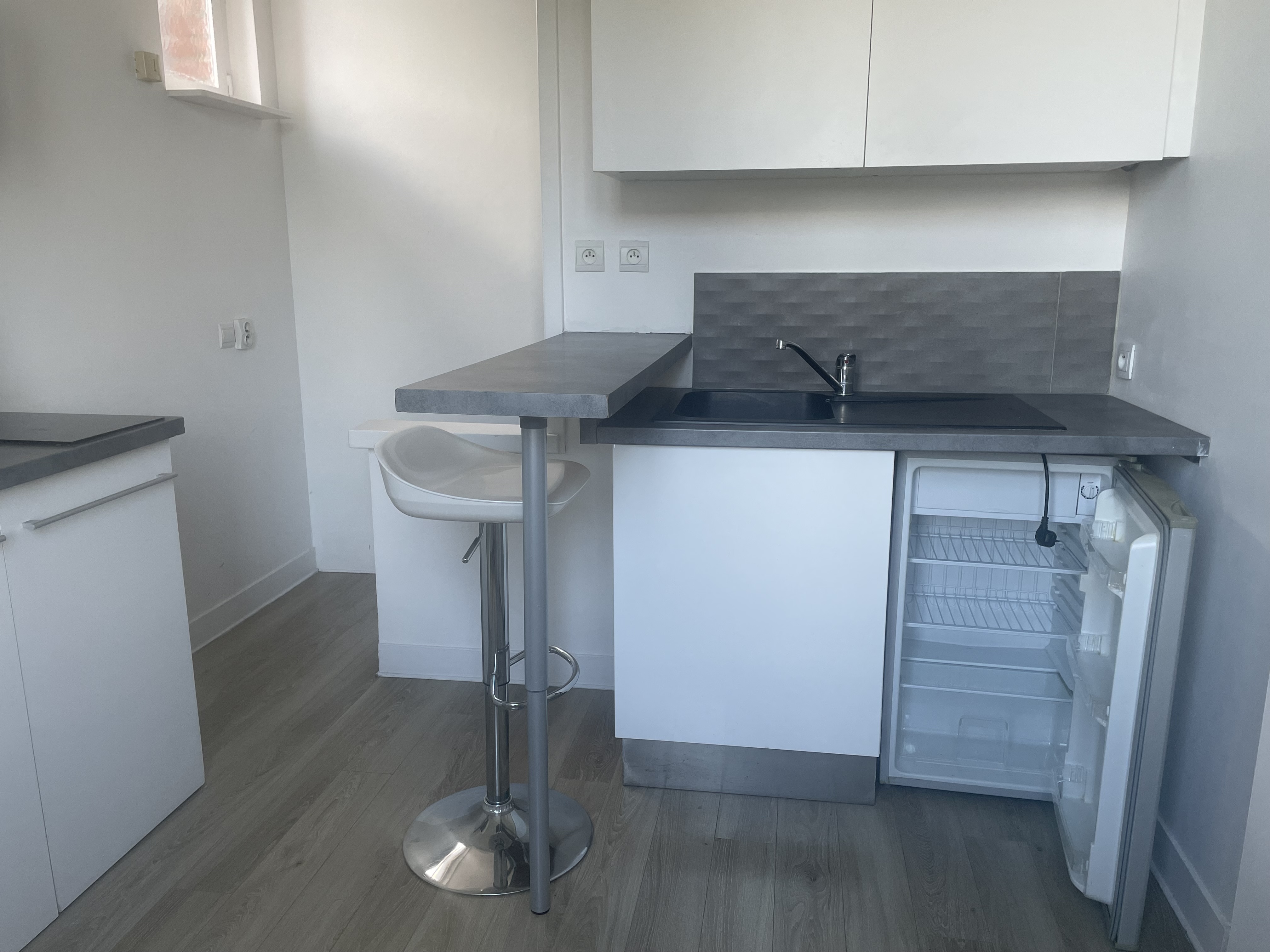 Cuisine équipé réfrigérateur, plaque induction, micro-ondes hotte.