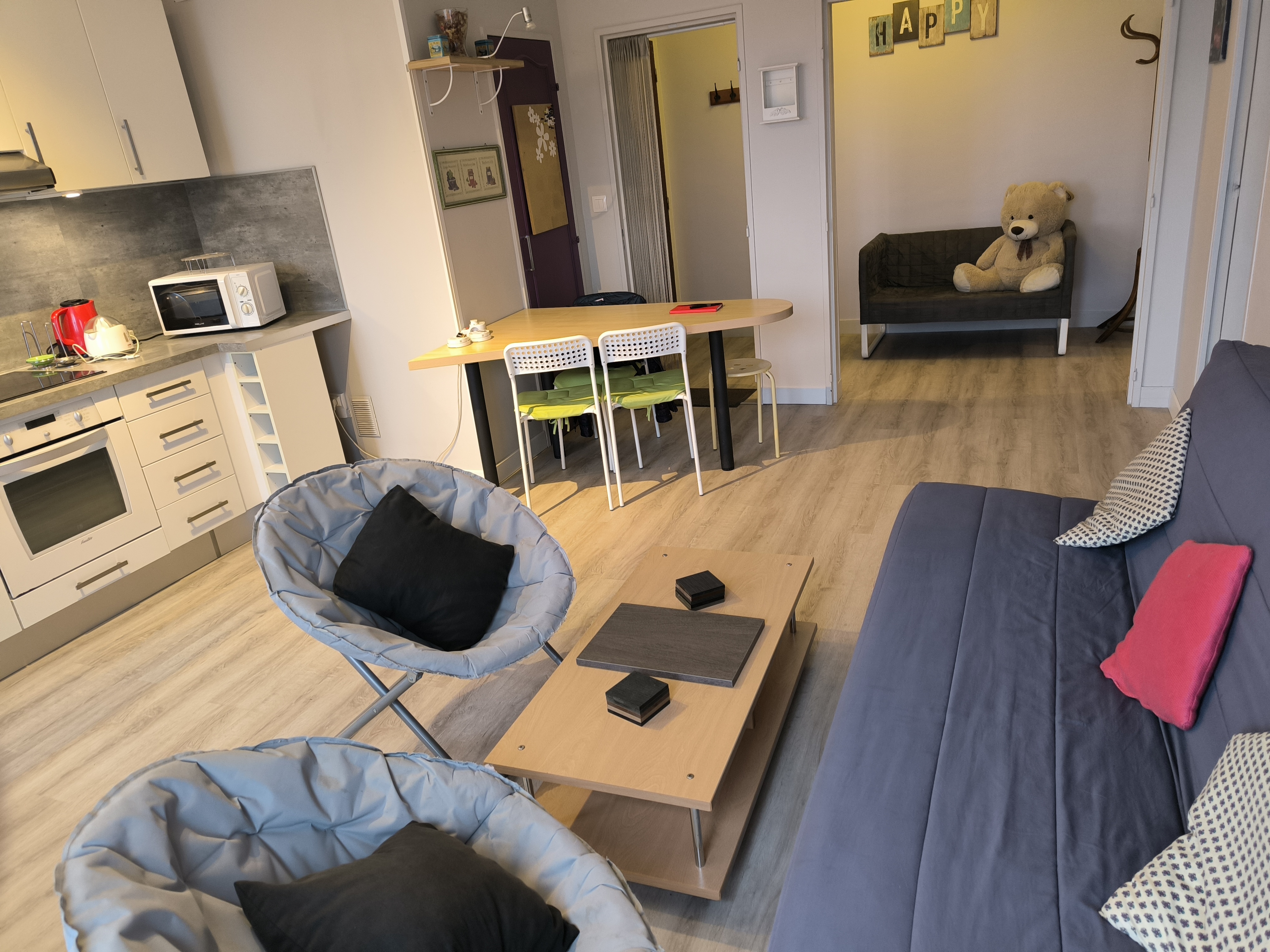 - Séjour salon lumineux ouvert sur cuisine aménagée,