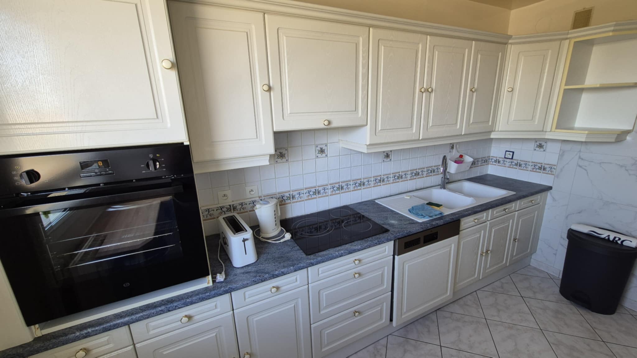 🍽 Cuisine toute équipée: plaque, hotte, grand réfrigérateur, congélateur, lave-vaisselle, four, vaisselles, ustensiles de cuisine. Un cellier/buanderie est collé à la cuisine pour stocker de la nourriture ou du matériel de nettoyage.