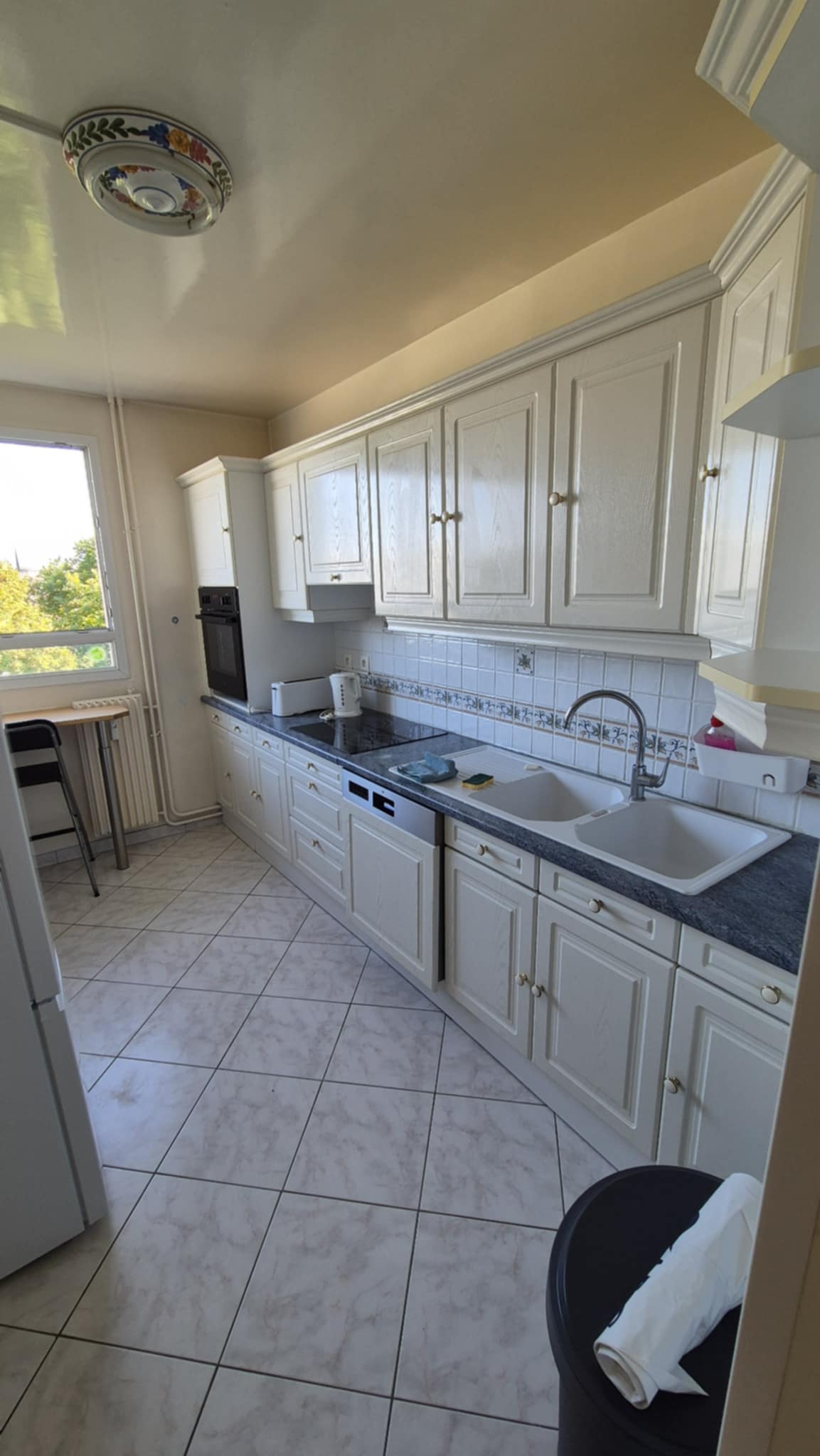 🏠 Appartement meublé au 5ème étage avec ascenseur, vue sur la ville de Compiègne au sein d’une résidence sécurisée, cave, places de parking gratuites disponibles juste en bas de l’immeuble.