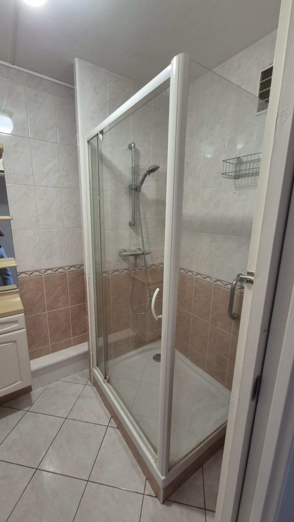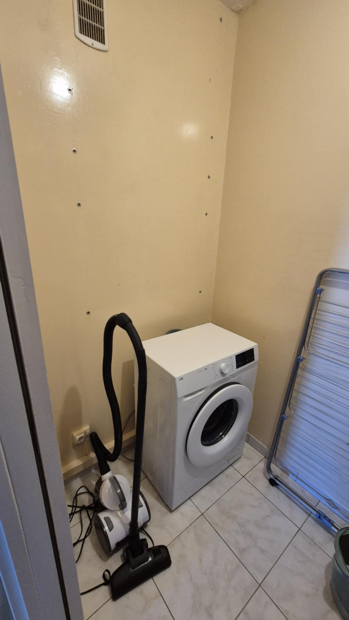⛲ Salle de bain avec douche, rangement et machine à laver + Sèche-linge. WC séparé. Equipement de nettoyage fourni (Aspirateur, étendoir, balai etc..)