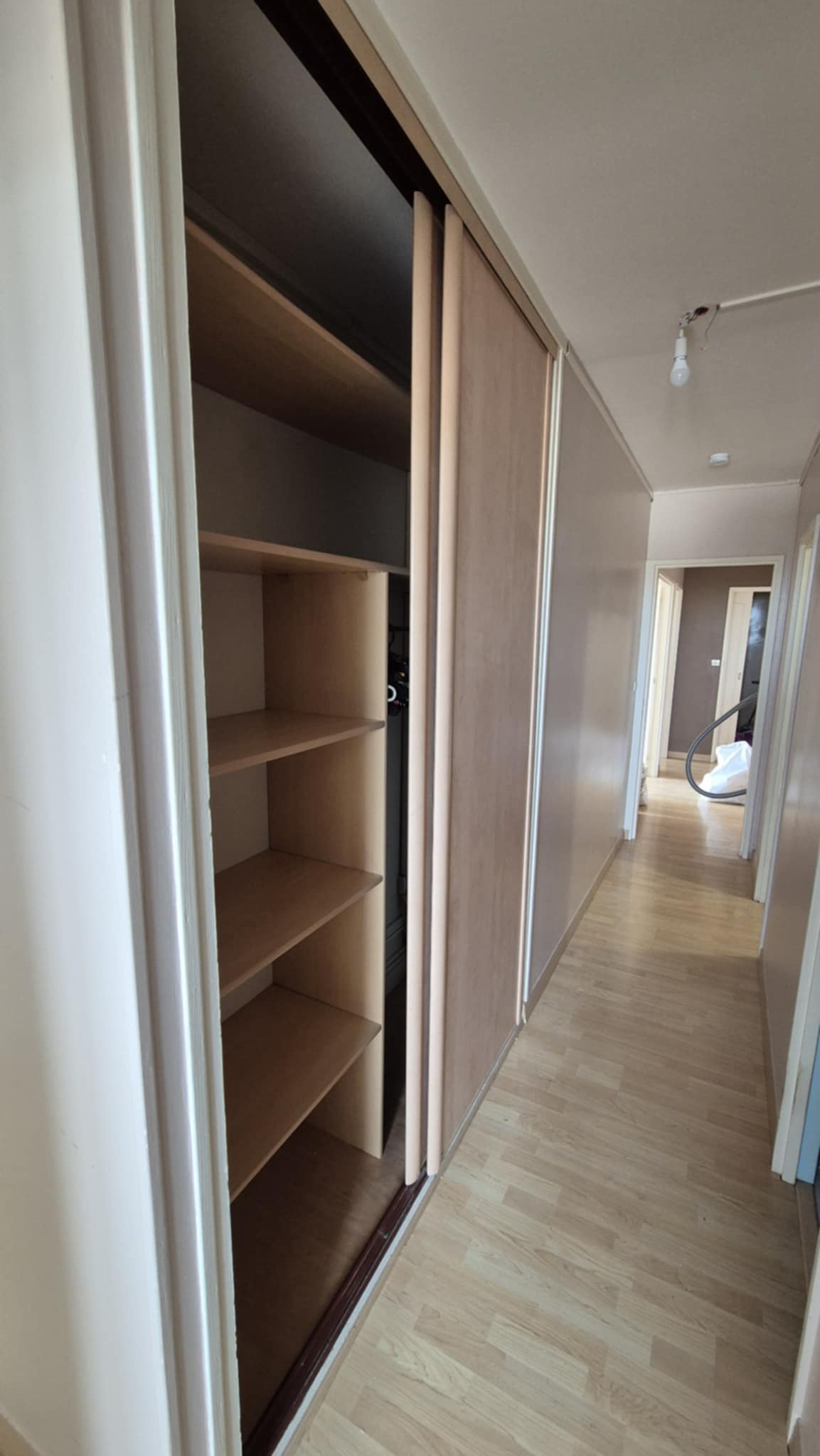 🚪 Entrée avec étagère, couloir et de grands placards aménagés.