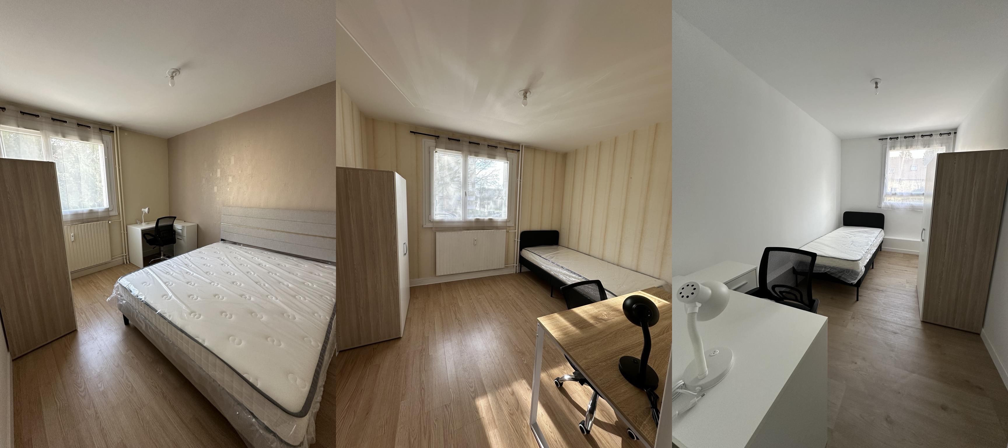3 chambres meublées disponibles en colocation dans un appartement lumineux entièrement refait à neuf, situé dans une résidence calme et sécurisée. Grand parking au pied de la résidence.